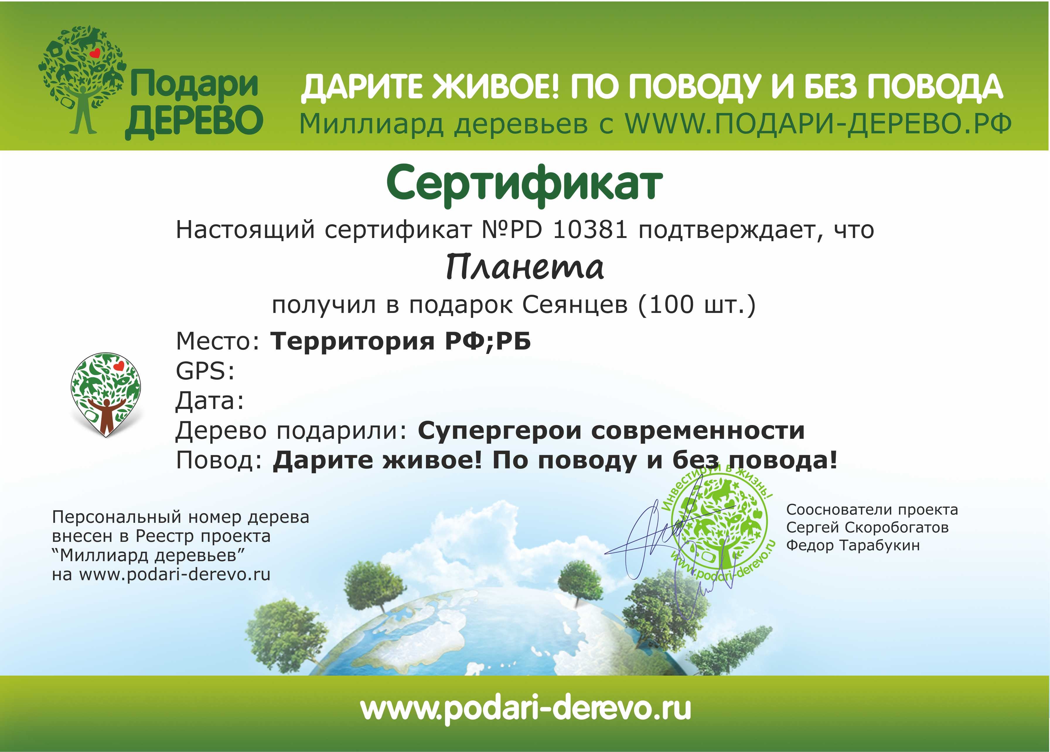 Каждый участник получает ссылку на фотоотчет по e-mail после посадки и обновленный именной сертификат с едиными GPS координатами центра места посадки.