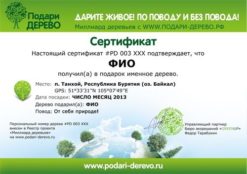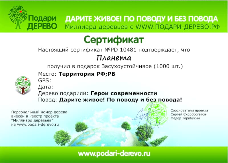 - деревья от 550 - 1500 рублей – деревца высотой 30-100 см, также имеют сразу привязку к региону, без именных табличек, + индивидуальная фотография саженца и + общие gps координаты периметра/линии места посадки или точки центра.